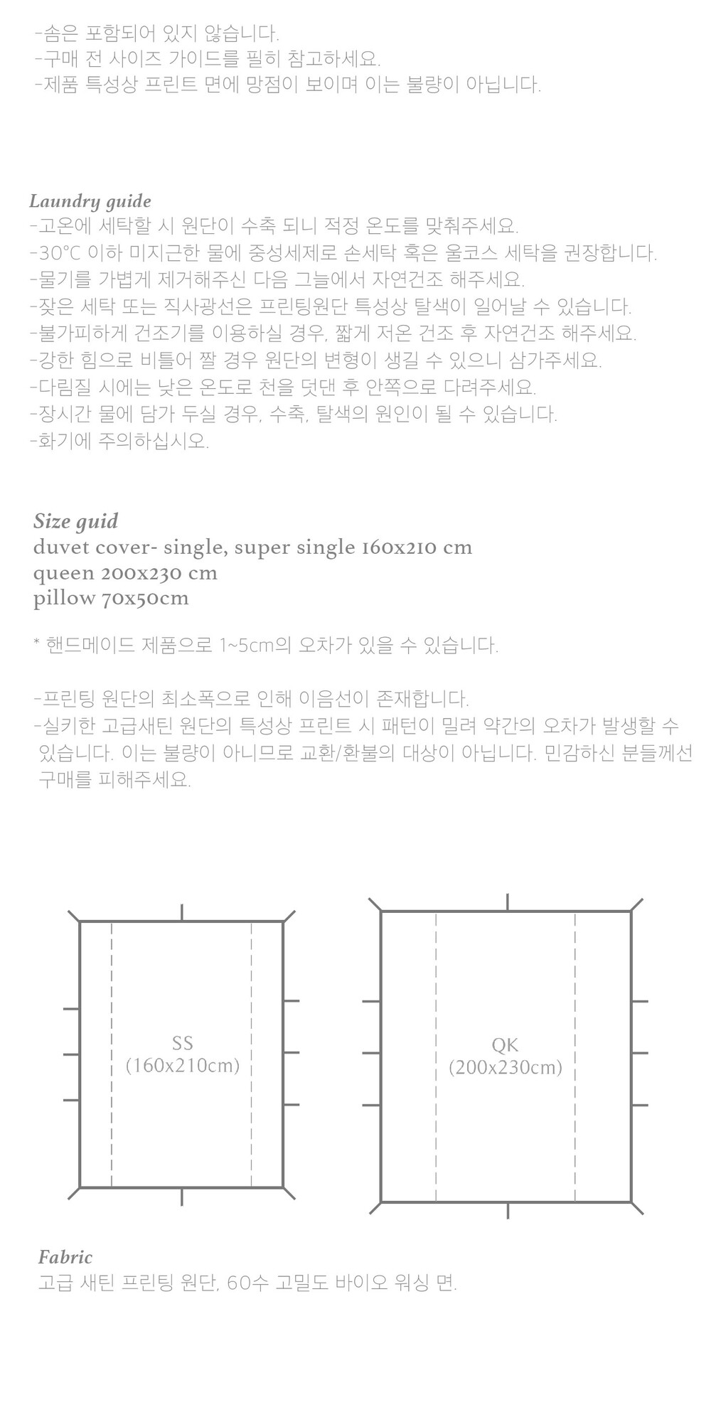 -홑이불로 사용가능하며 이불솜에 따라 4계절 사용 가능합니다.