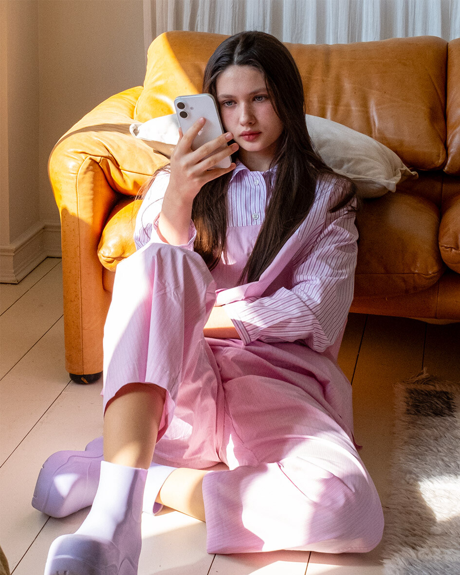 - A라인으로 떨어지는 여유있는 셔츠 핏