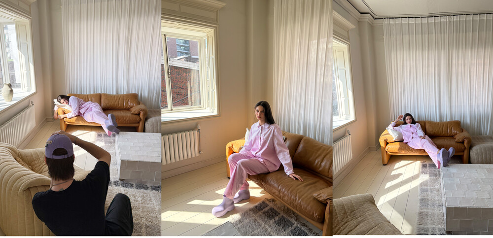 -두 가지 원단의 특성을 살린 배색 디자인