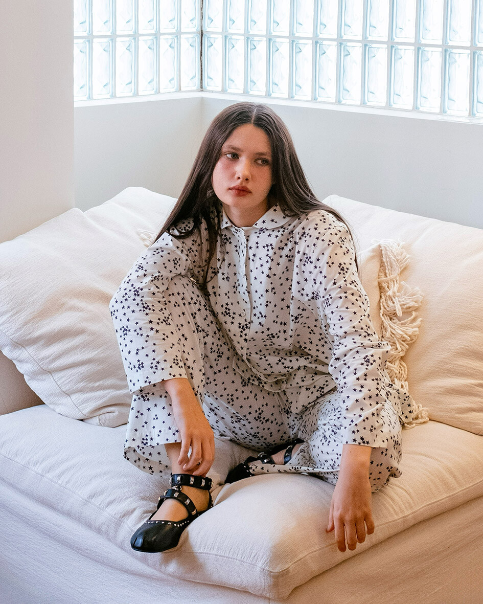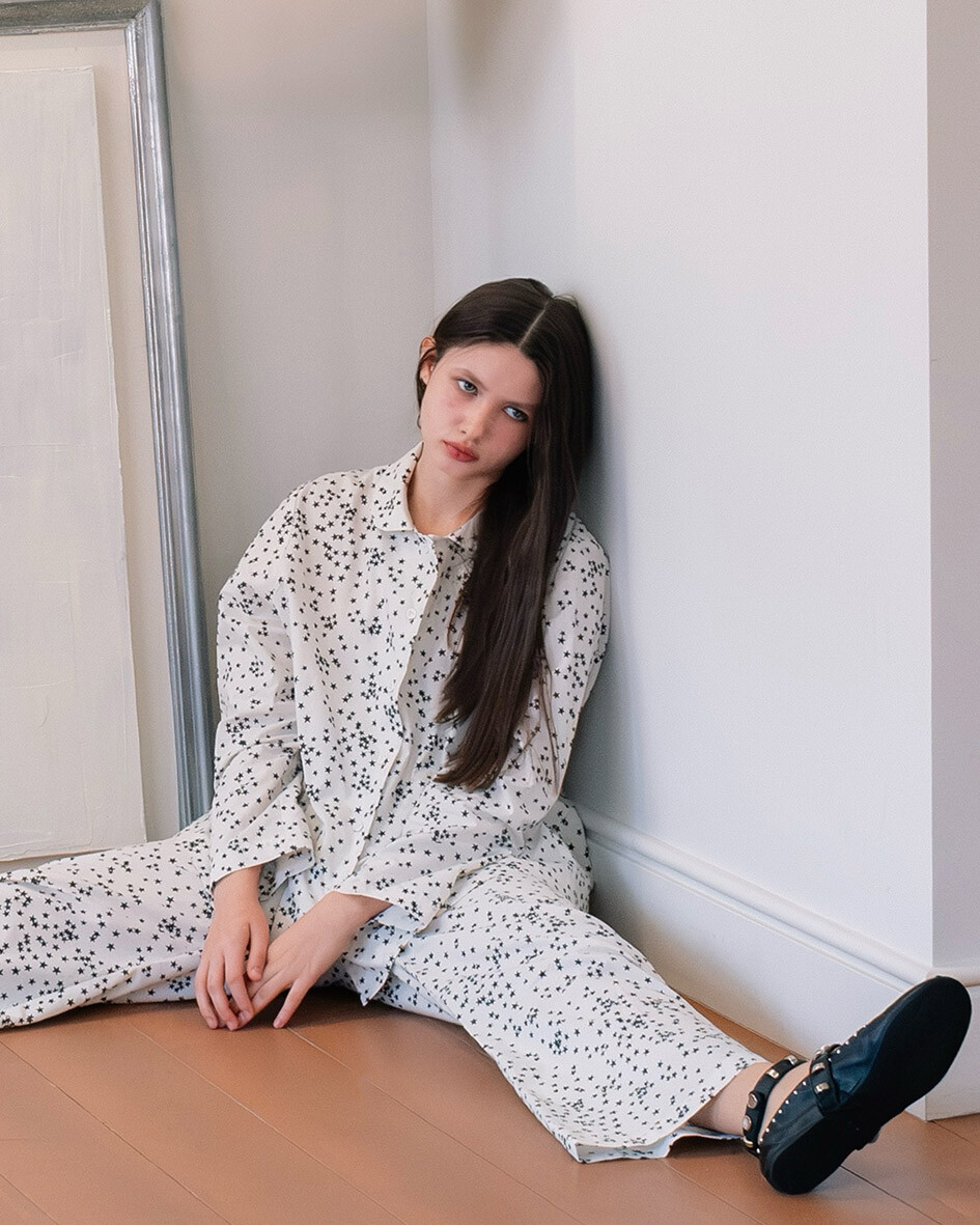 - A라인으로 떨어지는 여유있는 셔츠 핏