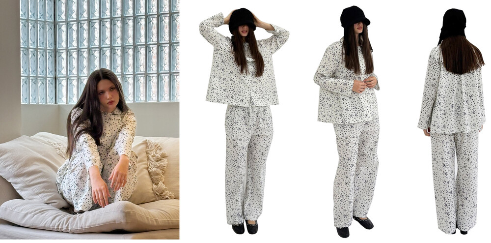 - 허리 핀턱으로 여유로운 핏의 바지와 스트링으로 조절 가능한 허리 사이즈